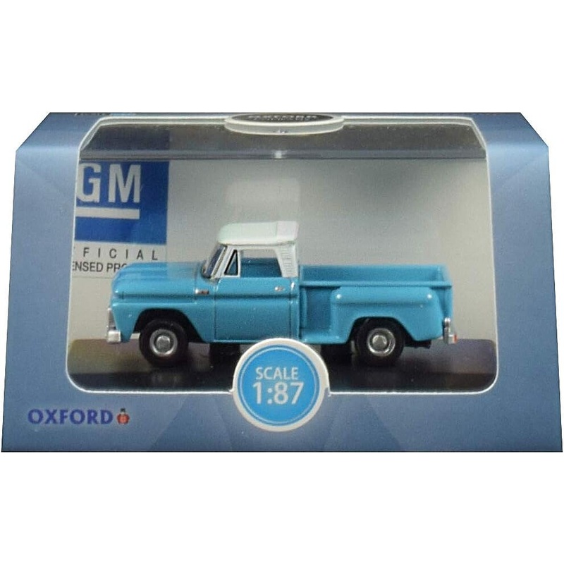 This is the HO Scale 1965 Chevrolet Stepside Pickup in light blue and white from Oxford.Product Rank#4 in Vehicles - HO Scale#12 in Roadway#153 in Model TrainsFeaturesFully Assembled1:87 Scale